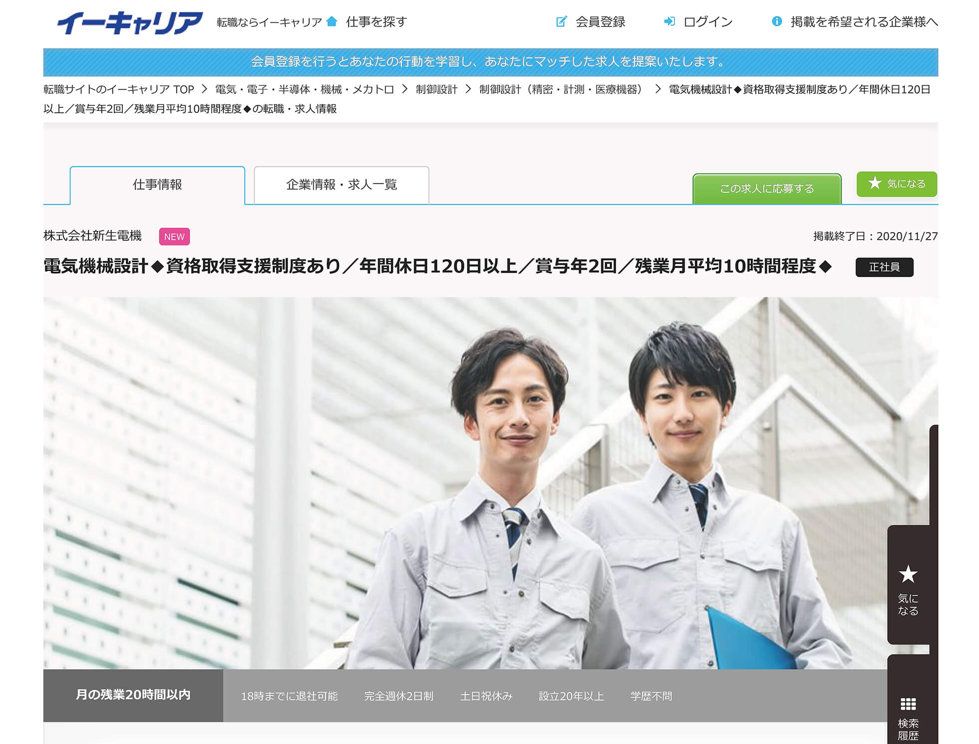 株式会社新生電機は、これから会社として更なる成長をしていくため、ともに会社を盛り上げていく仲間を募集しようと考え、転職サイトのイーキャリアに求人情報を掲載しました。